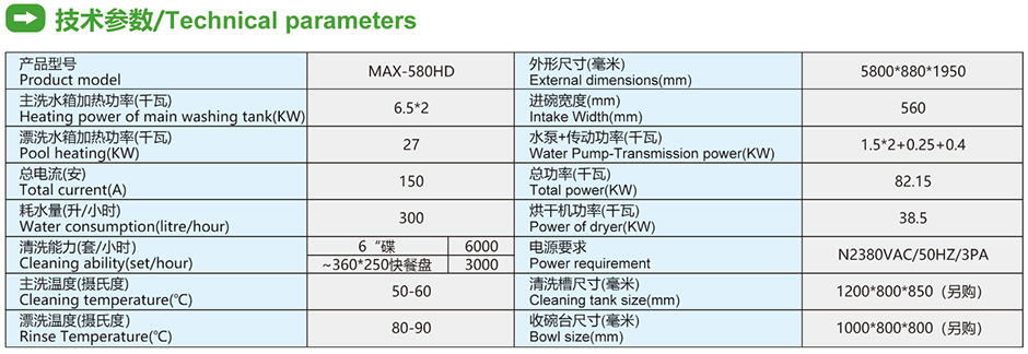 雙缸兩道漂洗雙烘干平放式洗碗機 MAX-580HD