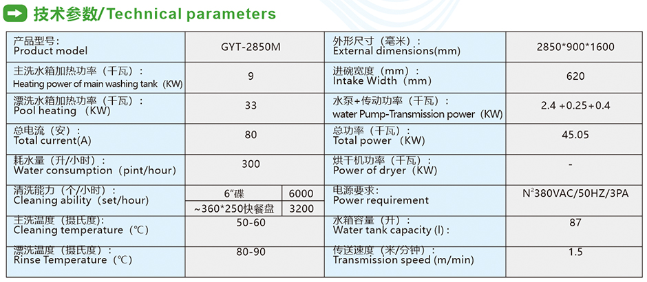 • 單缸兩道漂洗斜插式洗碗機GYT-2850M